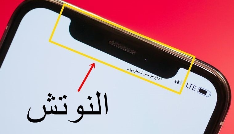 النوتش Notch هو عبارة عن قطع أو شريط في أعلى الشاشة ( غالبًا في الهواتف الذكية ) ويضم في مساحته الكاميرا والمستشعر والسماعة ، مع ترك مساحة على الجانبين لعرض التاريخ وقوة الشبكات الخلوية وشحن البطارية و......إلخ ، وتختلف مساحة النوتش من جهاز إلى آخر.