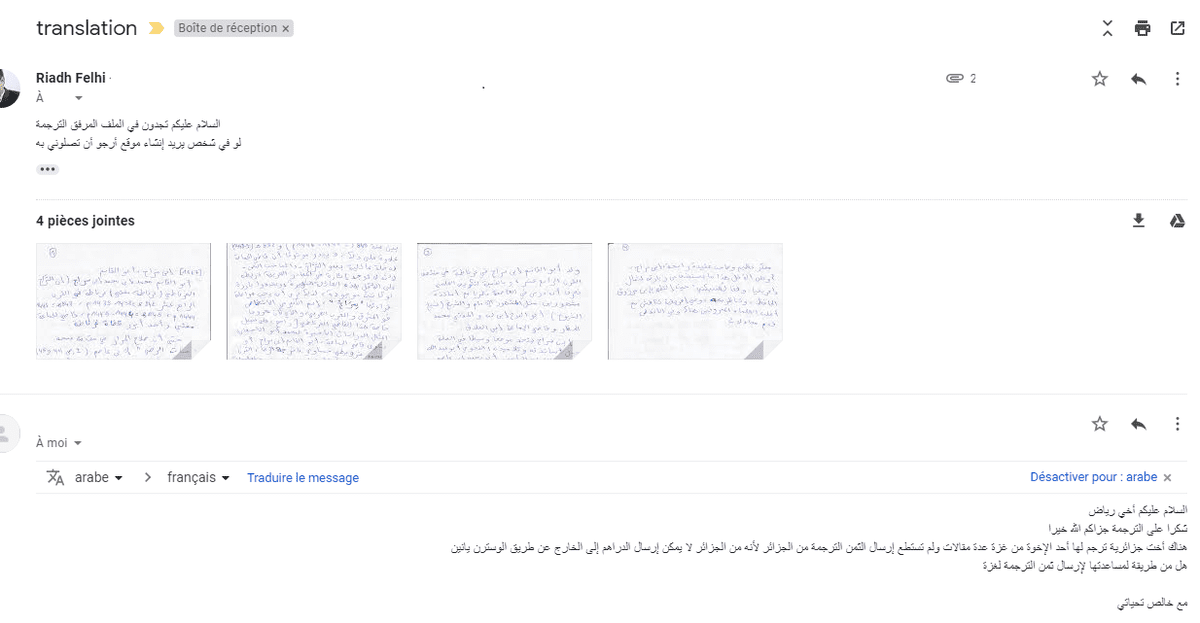 وقتها في بداية حياتي المهنية كنت سعيدا جدا بهذا العمل فأقوم كل يوم لمدة أربع او خمس ساعات بالترجمة ثم أمارس هواياتي و ثم طلب مني أحدهم أن اترجم له من اللغة العربية للفرنسية وبما أنه يعرف العميل الأول فلم يصدق إتقاني للغة الفرنسية التي هي لغتي الثانية بعد العربية