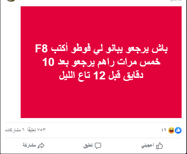 و بعد هاذا كنت احرك عجلة الماوس في صفحات الفيسبوك وجدت بوست (الذي تشاهدونه في الصورة )