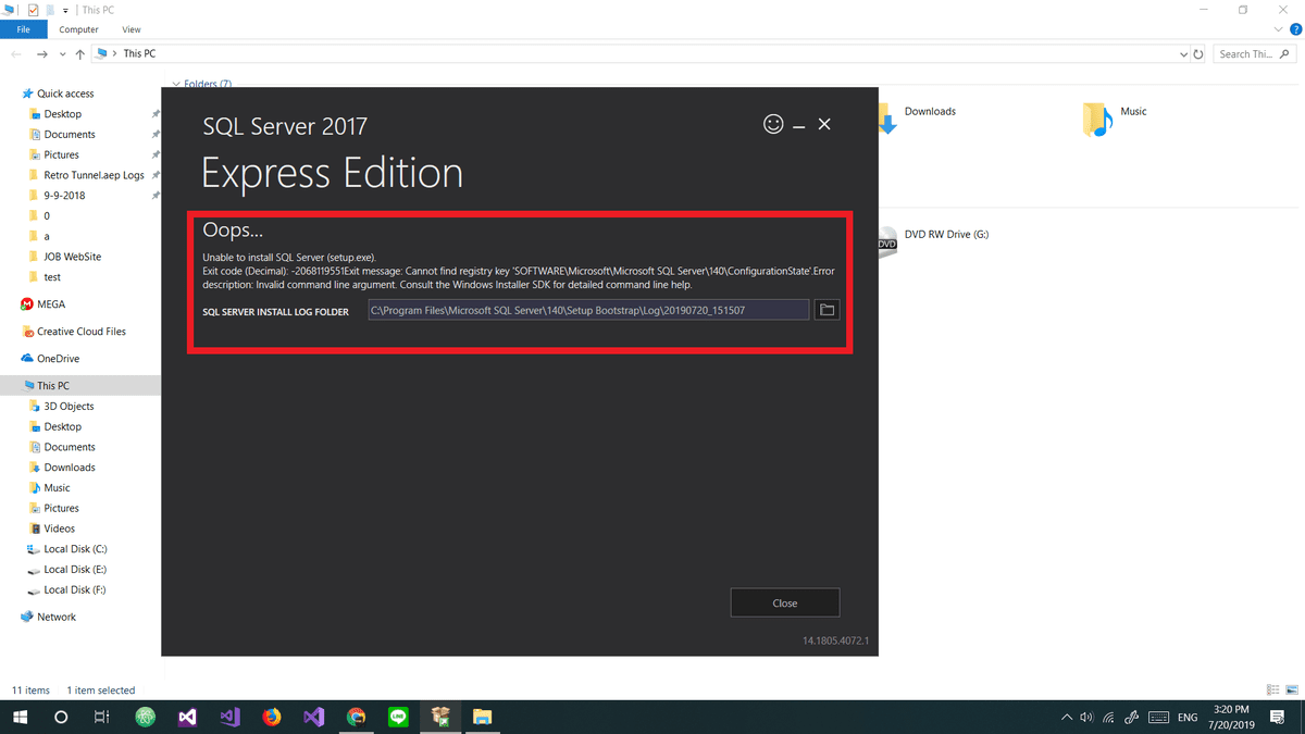 ساعدوني يا أصدقاء بالغلط حدفت sqlserver بطريقه غريبه من قرص c ويبدو اني حدفت ملف مهم لم استطع تنصيب البرنامج بعد دالك هده صوره للخطأ الدي واجهني ولا أعرف كيف أصححه هل لديكم فكره عن الموضوع