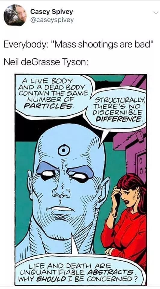 لا أعلم إن كان نيل تايسون قال ذلك فعلًا ام لا لكن هذا فعلًا متسق تمامًا مع المادية التي يتبناها.