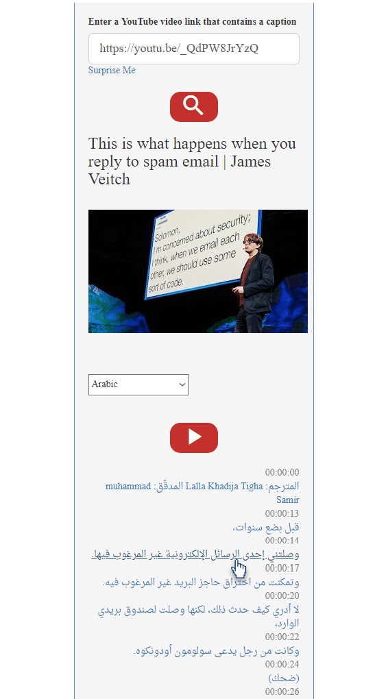 الفكرة هي تصفح يوتيوب عبر قراءة الترجمة المصاحبة، ويمكن النقر على أي جملة لفتح يوتيوب وتشغيل الفيديو عند الفترة الزمنية حيث يتم عرض الجملة.