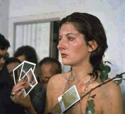 قررت أن تقف لمدة 6 ساعات متواصلة بدون حراك واتاحت للجماهير ان يفعلوا بها ما يريدوا، وضعت بجانبها طاولة بها سكين، ومسدس، والأزهار ...
