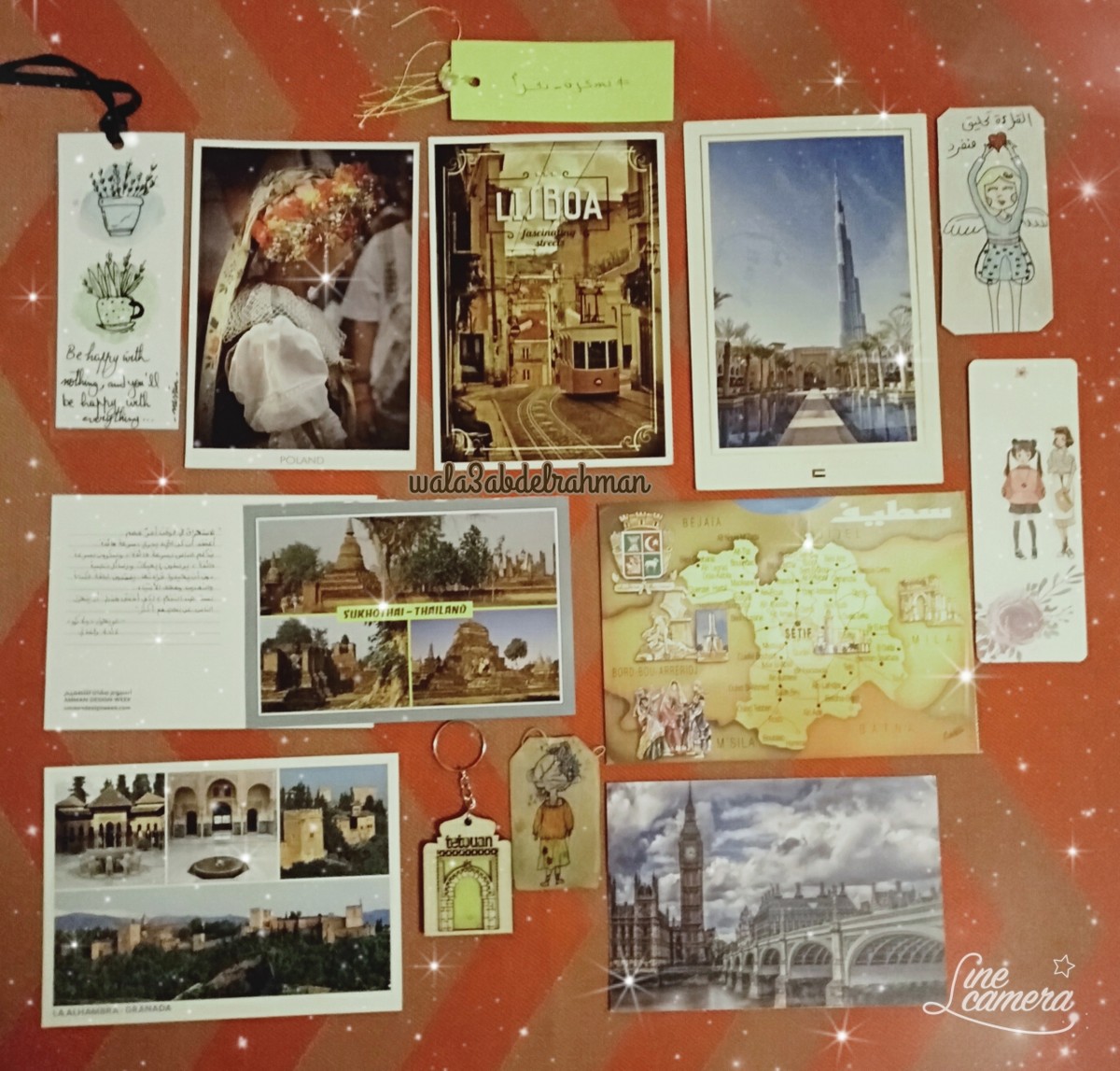 في الصورة بعض البطاقات والهدايا التي حصلت عليها من صديقات المراسلة البريدية