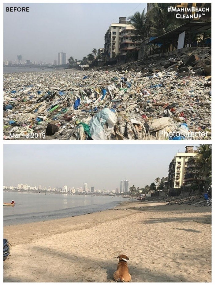قبل وبعد تنظيف شاطئ هندي من النفايات