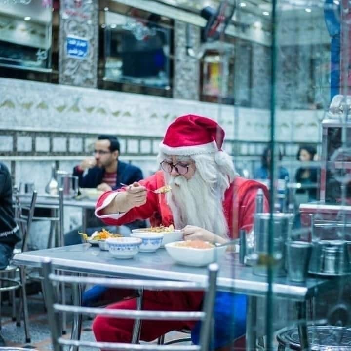Santa Claus celebrates Christmas in Egypt with eating Egyptian koshari