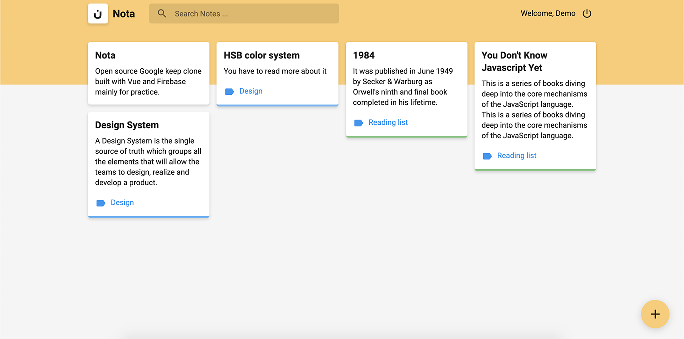 أردت أن أشارككم مشروعي "نوتة" وهو تطبيق للملاحظات شبيه ب Google keep مبني بإستخدام Vue و Firebase فقط للتدريب.