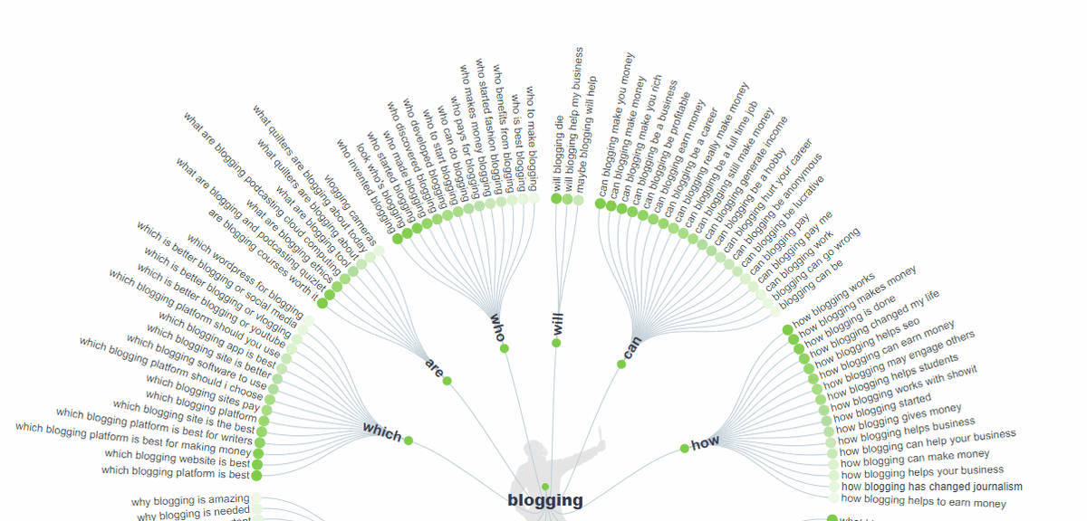 الطريقة التي تعمل بها هذه الخدمة هي إدخال مصطلح بحث ومن ثم تقوم بإيجاد الأسئلة التي يسأل الناس عنها في محركات البحث... إذا نظرت إلى كلمة "blogging" ، على سبيل المثال ، إليك بعض النتائج التي ستراها: